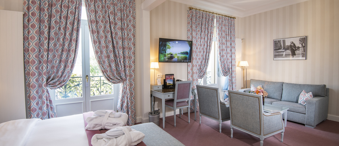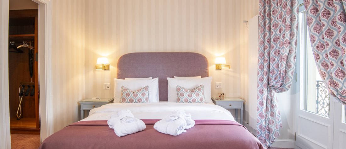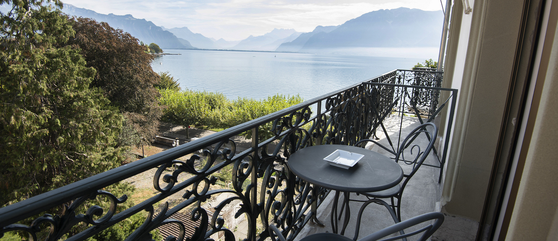 Alliance parfaite entre style classique et confort, cette suite avec balcon privatif et vue partielle sur le lac est recommandée pour un séjour paisible. Un cocon élégant au cœur de la Riviera, à compléter avec nos services à la carte.