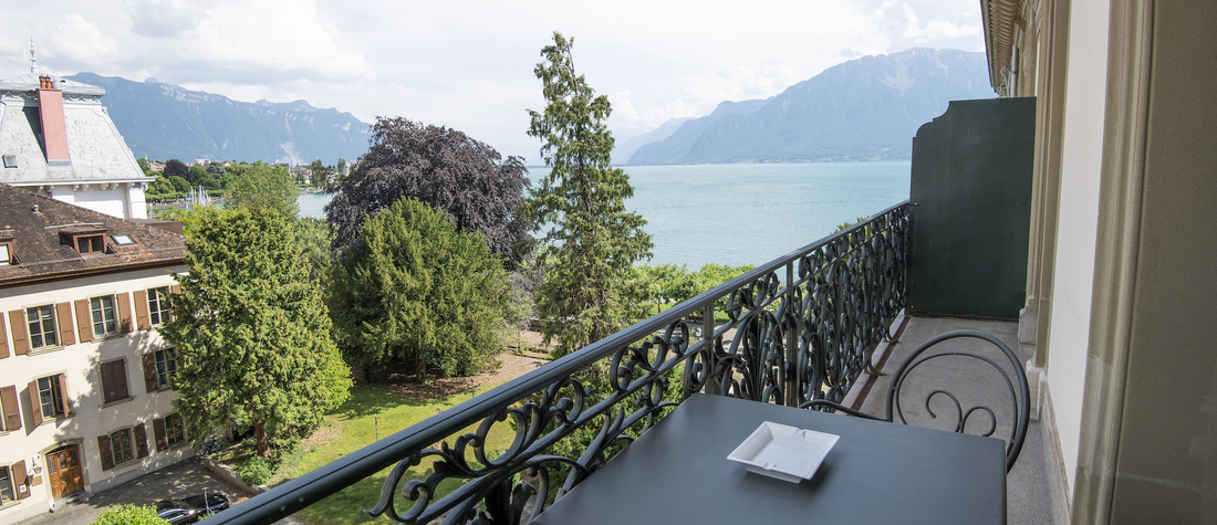 Une suite contemporaine baignée de lumière, avec balcon privatif et vue partielle sur le lac. L’adresse idéale pour un séjour relaxant, entre élégance moderne et art de vivre riviera. Services à la carte disponibles.