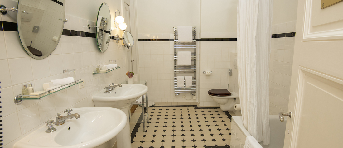 - Salle de bain avec baignoire ou douche : Certaines chambres disposent d’une salle de bain historique, Radiateur porte-serviettes pour plus de confort