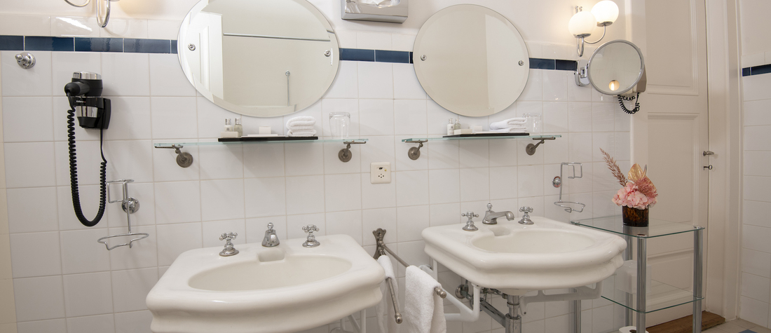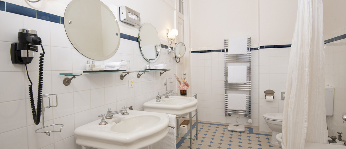 - Salle de bain avec baignoire ou douche : Certaines chambres disposent d’une salle de bain historique, Radiateur porte-serviettes pour plus de confort